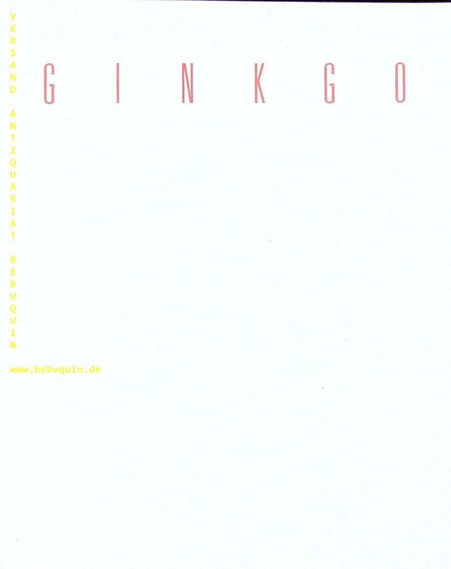 SCHWABE, Wilmar: (Hrsg.) Ginkgo. Eine Fotoausstellung. Karlsruhe, (Stadthalle), 1987. 4°. 59 S. mit zahlr. teils farb. Bildern. OKart. gutes Ex. EA.