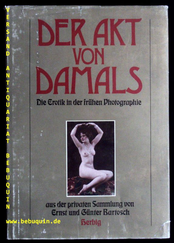 EROTIK.– BARTOSCH, Günter: Der Akt von damals. Die Erotik in der frühen Photographie aus der privaten Sammlung von Ernst u. Günter Bartosch. München (Herbig), 1976. 4°. 195 S. mit zahlr. historischen Aktaufnahmen. OPb mit OUmschl. Umschlagkanten leicht bestoßen. EA.