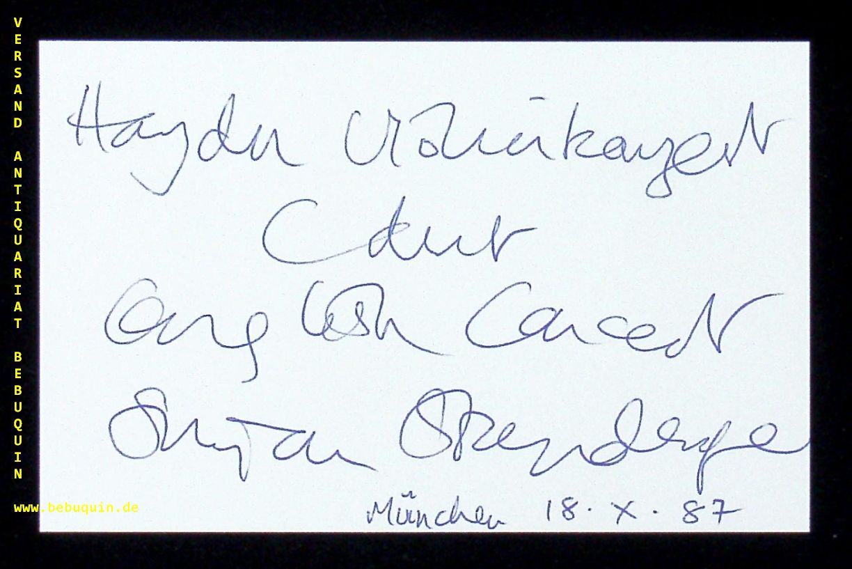 STANDAGE, Simon (Violinist): eigenhändig signierte und datierte Autogrammkarte. München (Herkulessaal), 18.10.1987. 8 x 12,5 cm Karteikarte. Simon Andrew Thomas Standage (* 8. November 1941 in High Wycombe, Buckinghamshire) ist ein britischer Violinist und Dirigent. (Wikipedia)