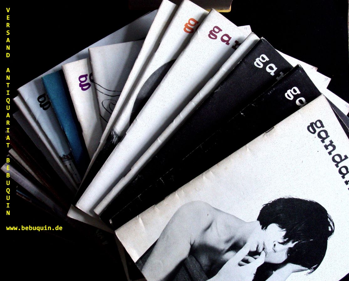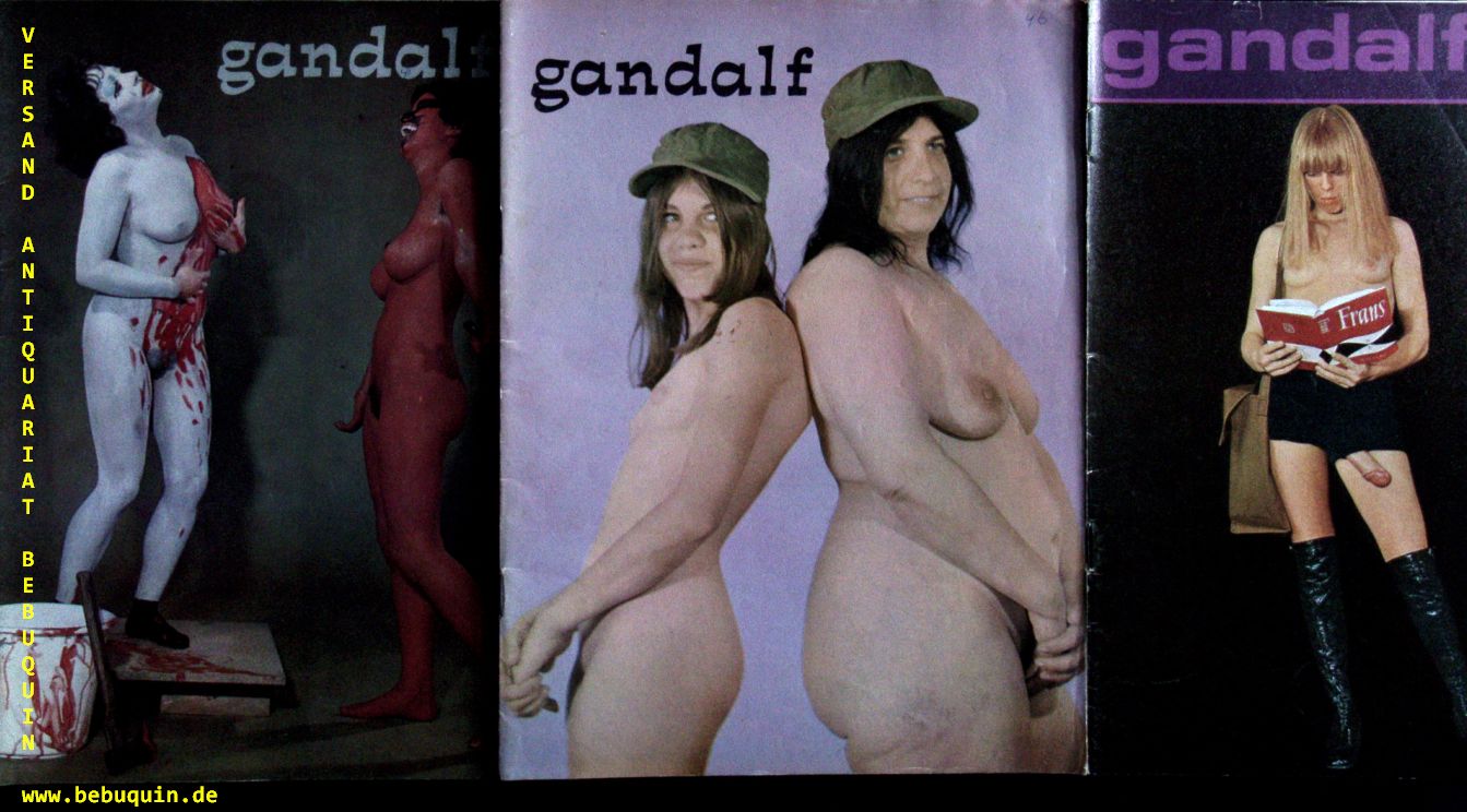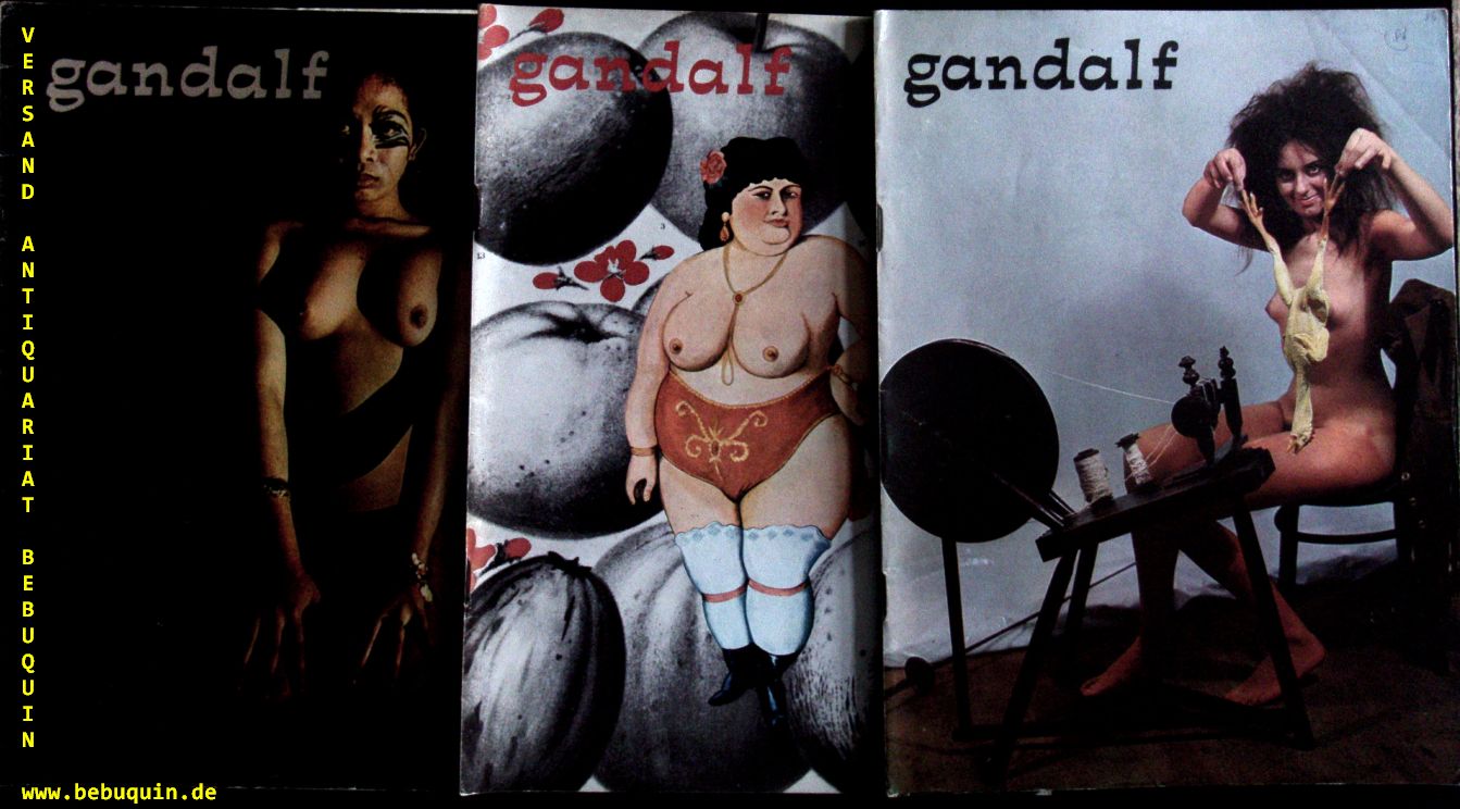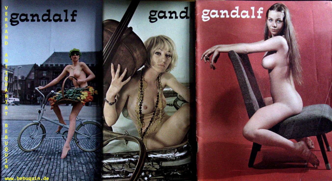 EROTIK.– GANDALF.– Konvolut von 32 Heften der holländischen Zeitschrift für Fotografie, Sex und Gegenkultur. Hier die Nummern 12 – 29, 31 – 37, 40 – 42, 44, 46, 47, 52, 55, 58. 32 Hefte. Amsterdam, 1966 ff. 4°. jeweils ca 50 S. mit zahlr. teils farb. Bildern und Bildtafeln. farb. ill. OKart. teils leichte Gebrauchsspuren, wie sie für ein Periodikum typisch sind, insgesamt allerdings gut erhalten. wurde meines Wissens noch nie in vergleichbarem Umfang angeboten.