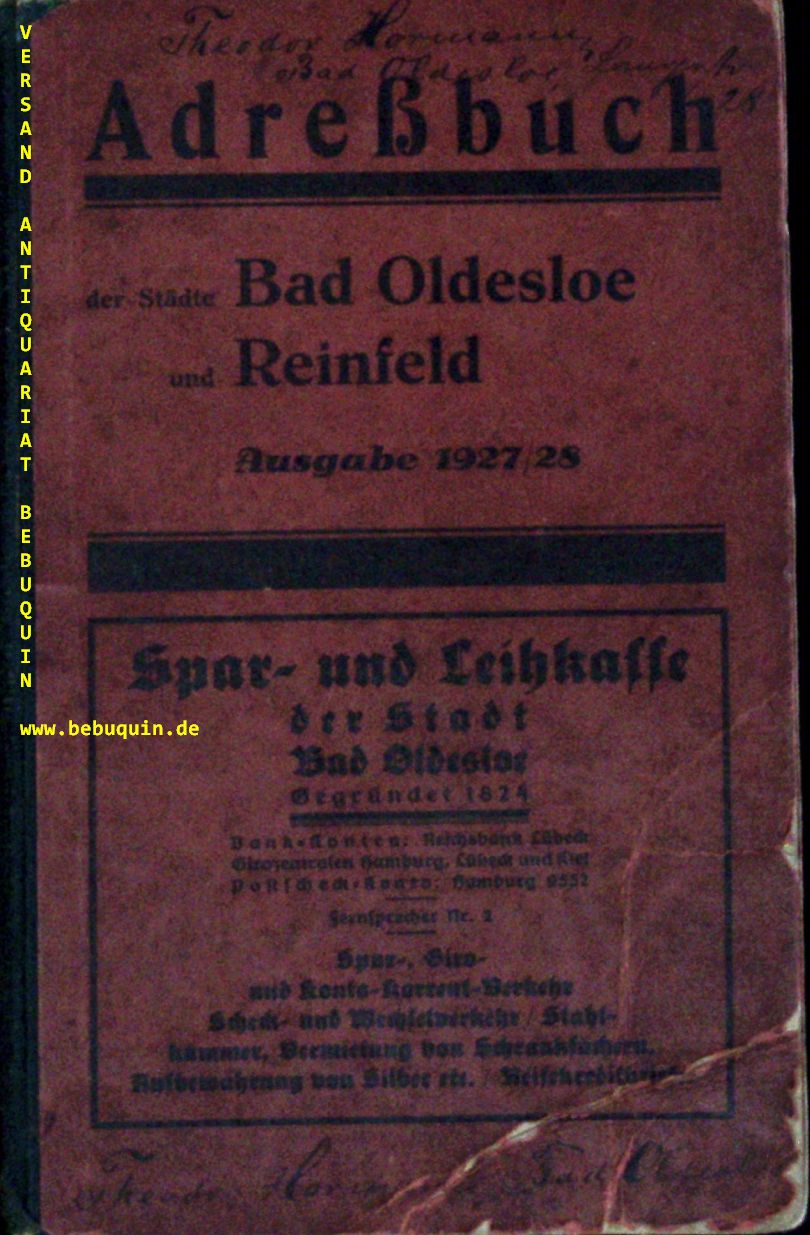 ADRESSBUCH DER STÄDTE BAD OLDESLOE UND REINFELD 1927/28.- Bearb. auf Grund behör