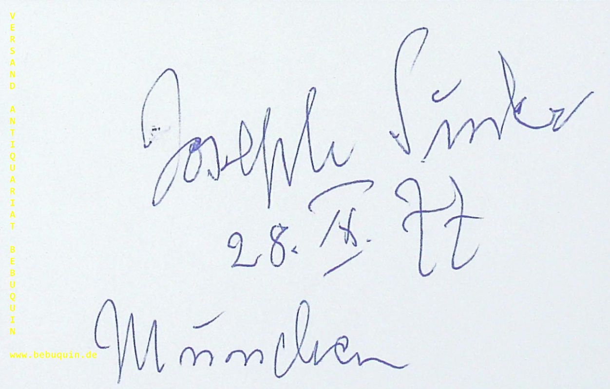SUDER, Joseph (Komponist): eigenhändig signierte und datierte Autogrammkarte. München (Philharmonie), 28.9.1977. 8 x 12,5 cm. Karteikarte. Joseph Suder (* 12. Dezember 1892 in Mainz; † 13. September 1980 in München) war ein deutscher Komponist und Dirigent. (Wikipedia).