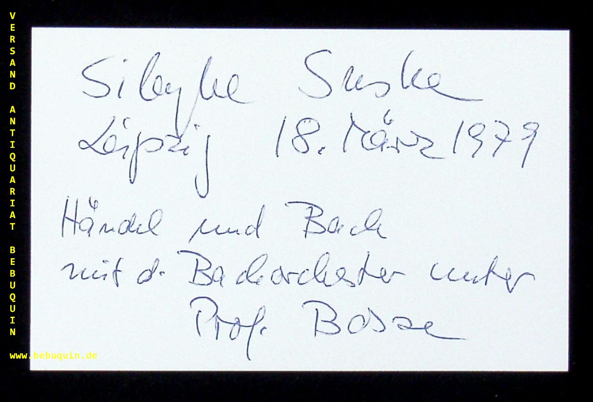 SUSKE, Sibylle (Sopran): eigenhändig signierte und datierte Autogrammkarte, München (Philharmonie), 18.3.1979. 8 x 12,5 cm. Karteikarte. Sibylle Suske (Soprano). Born: November 21, 1932 – Krischütz, Silesia, Germany – Died: March 30, 2020 – Germany.