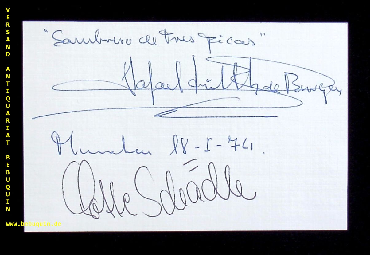 FRÜHBECK DE BURGOS, Rafael (Dirigent) + SCHÄDLE, Lotte (Sopran): eigenhändig von beiden signierte und datierte Autogrammkarte. München (Philharmonie), 18.1.1974. 8 x 12,5 cm. Karteikarte. Rafael Frühbeck (* 15. September 1933 in Burgos; † 11. Juni 2014 in Pamplona), bekannt unter seinem Künstlernamen Rafael Frühbeck de Burgos, war ein spanischer Dirigent deutscher Herkunft. Lotte Schädle (* 23. Oktober 1926 in Füssen) ist eine deutsche Opern-, Operetten-, Lied- und Konzertsängerin (Sopran). (Wikipedia)