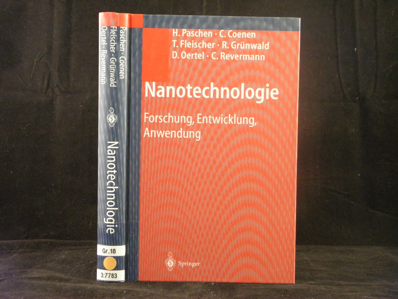 TECHNIK.– PASCHEN / COENEN / FLEISCHER/ GRÜNWALD / OERTEL / REVERMANN: Nanotechnologie. Forschung, Entwicklung, Anwendung. Berlin (Springer), 2004. Gr. 8°. XV, 366 S. mit 35 Abb. OPb. Ordnungsgemäß aus Bundeswehrbeständen ausgesondertes Bibliotheksexemplar (Rückenschild und Stempel), feines Ex. EA.