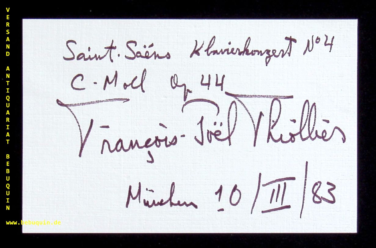 THIOLLIER, Francois- Joel (Pianist): eigenhändig signierte und datierte Autogrammkarte. München (Philharmonie), 10.3.1983. 8 x 12,5 cm. Karteikarte. François-Joël Thiollier (born 1943) is an internationally recognized French-American classical pianist. (Wikipedia)