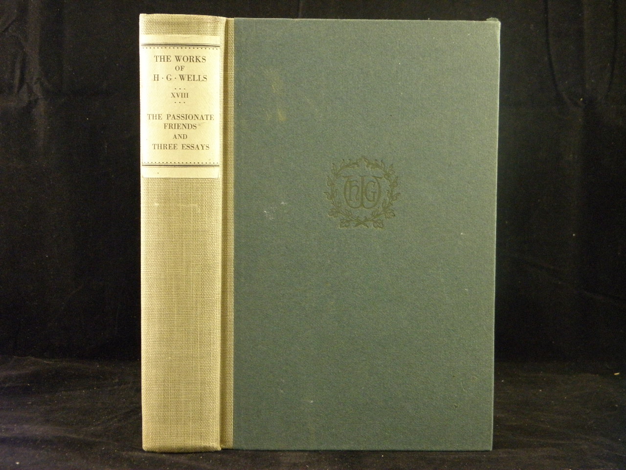 WELLS, H.G.: The passioante Friends. A novel an d three essays. New York (Scribner), 1926. Gr. 8°. 4 Bl. 444 S. mit einem Kameraportrait als Frontispiz by Hugh Cecil. OHLn. unaufgeschnitten. = Atlantic Edition, Vol., XVIII. Nr. 933 von 1050 handschriftlich nummerierten Ex. dieser Ausgabe.