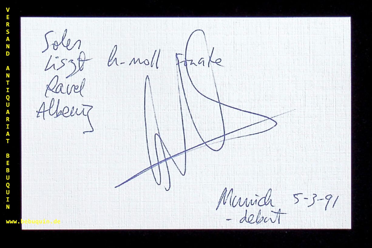 VERA, Ana-Maria (Pianistin): eigenhändig signierte und datierte Autogrammkarten. München (Herkulessaal), 5.3.1991. 8 x 12,5 cm. Karteikarte. Ana-Maria Vera (* 1965 in Washington, D.C.) ist eine US-amerikanische Pianistin. (Wikipedia)