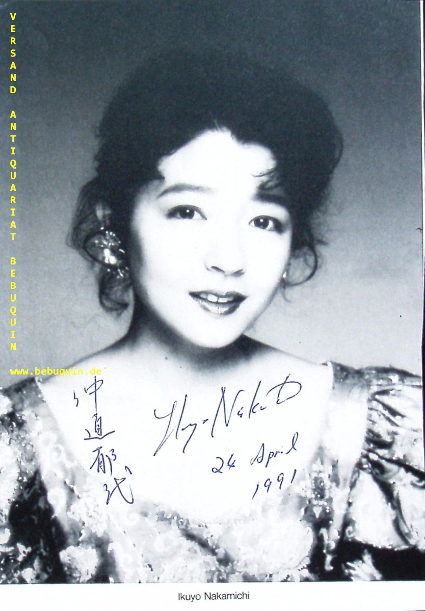 NAKAMICHI, Ikuyo (Pianistin): eigenhändig signierte (zweisprachig) und datierte Portraitseite. München (Philharmonie), 24.4.1991. 17 x 12,5 cm. 1 Bl. Ikuyo Nakamichi, who made her debut in Japan and Europe in 1987, is one of the most outstanding and sought-after pianists in Japan.