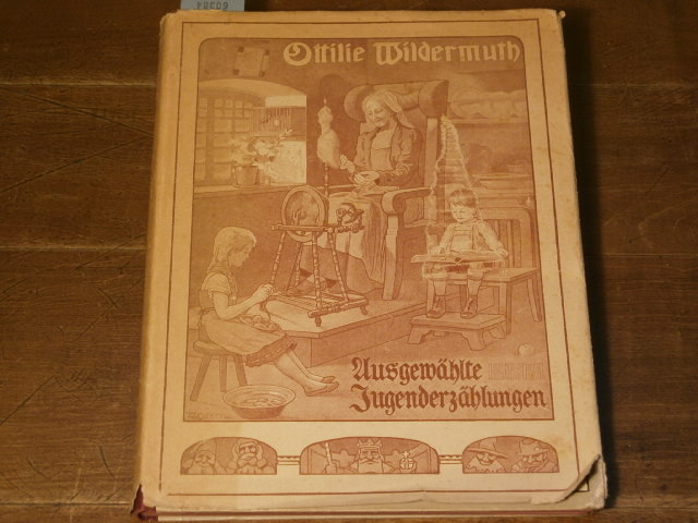 WILDERMUTH, Ottilie: Ausgewählte Jugenderzählungen. Die besten Kindergeschichten ausgewählt von ihrer Tochter. 17.– 21. Tsd. Stuttgart (Union), (1916). Gr. 8°. 135 (1) S. mit 4 farb. Einschaltbildern + 9 zweifarb. Textabb. OHLn mit OUmschl. sehr gute Erhaltung. Hier mit dem seltenen Umschlag.