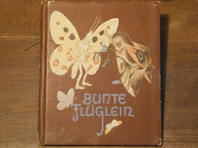 BOHATTA-MORPURGO, Ida: Bunte Flüglein. München (Josef Müller), 1937. 12°. 10 Bl. mit 9 farb. Bildtafeln. farb. ill. OPb. Schmetterlingsabbildungen im Text von Kinderhand koloriert. EA.
