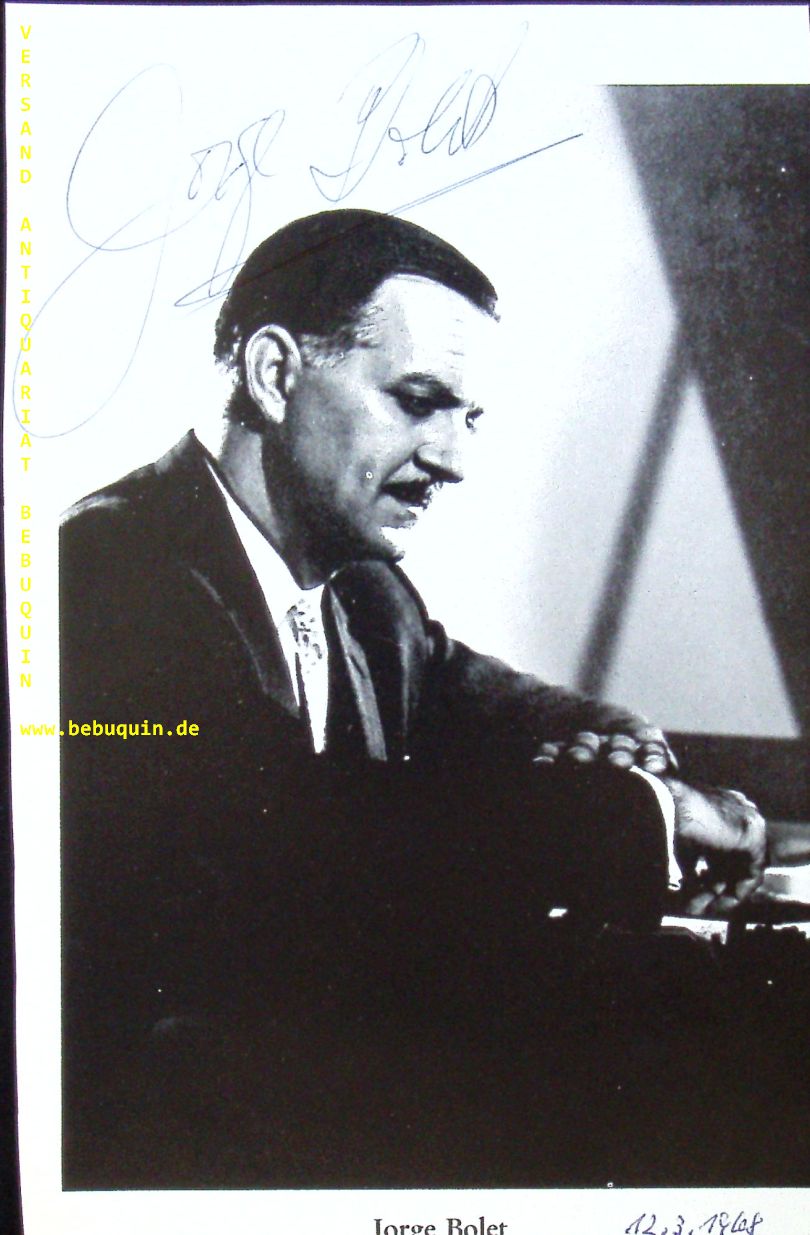 BOLET, Jorge (Pianist): eigenhändig signierte Portraitseite. München (Philharmonie), 12.3.1968. 19 x 12,5 cm. 1 Bl. schönes Motiv. Jorge Bolet (* 15. November 1914 in Havanna, Kuba; † 16. Oktober 1990 in Mountain View, Kalifornien, USA) war ein kubanischer Pianist mit amerikanischer Staatsbürgerschaft. (Wikipedia)