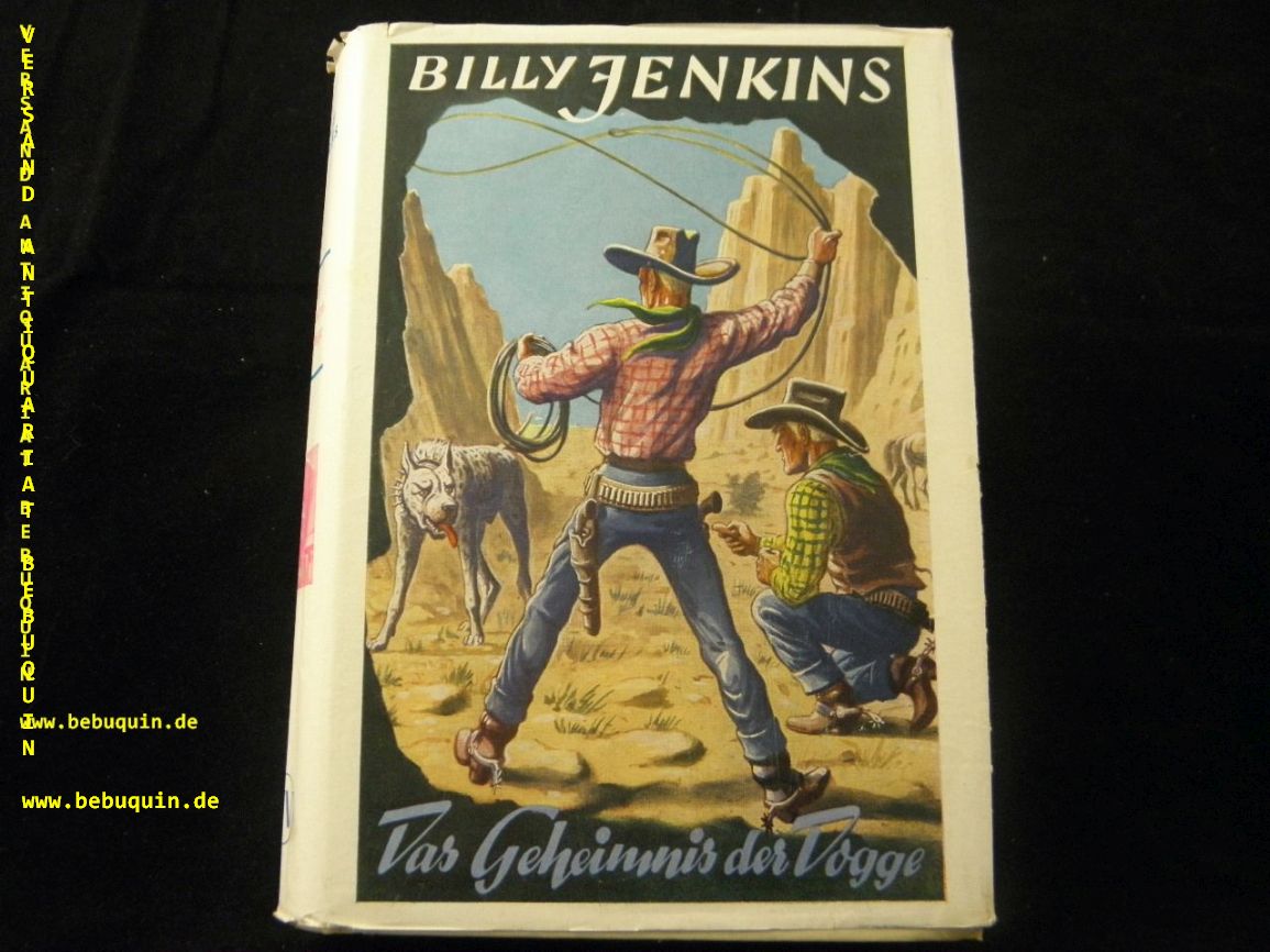 BILLY JENKINS.– HOLLIDAY, Chic: Das Geheimnis der Dogge. Sinzig (Uta), 1953. 256 S. farb. ill. OPb. mit OUmschl. gestempeltes Leihbuch. = Billy Jenkins Wild – West – Erzählungen, Bd. 89. 1. Aufl. dieser Ausgabe.