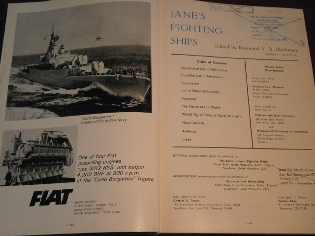 BLACKMAN, (Hrsg.) Jane’s Fighting Ships 1967-68.