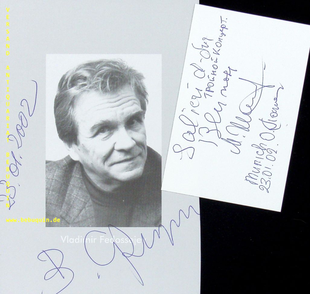 FEDOSSEJEV, Vladimir (Dirigent): eigenhändig signierte und datierte Portraitseite. München (Herkulessaal), 23.1.2002. 20 x 13 cm 5 Bl. Wladimir Iwanowitsch Fedossejew (* 5. August 1932 in Leningrad) ist ein russischer Dirigent. (Wikipedia)