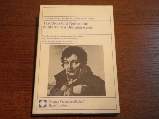 BALD, BALD-GERLICH + AMBROS: (Hrsg.) Tradition und Reform im militärischen Bildungswesen. Von der preußischen Allgemeinen Kriegsschule zur Führungsakademie der Bundeswehr. Einme Dokumentation 1810 – 1985. Baden-Baden (Nomos), 1985. Gr. 8°. 360 S. OKart. EA.