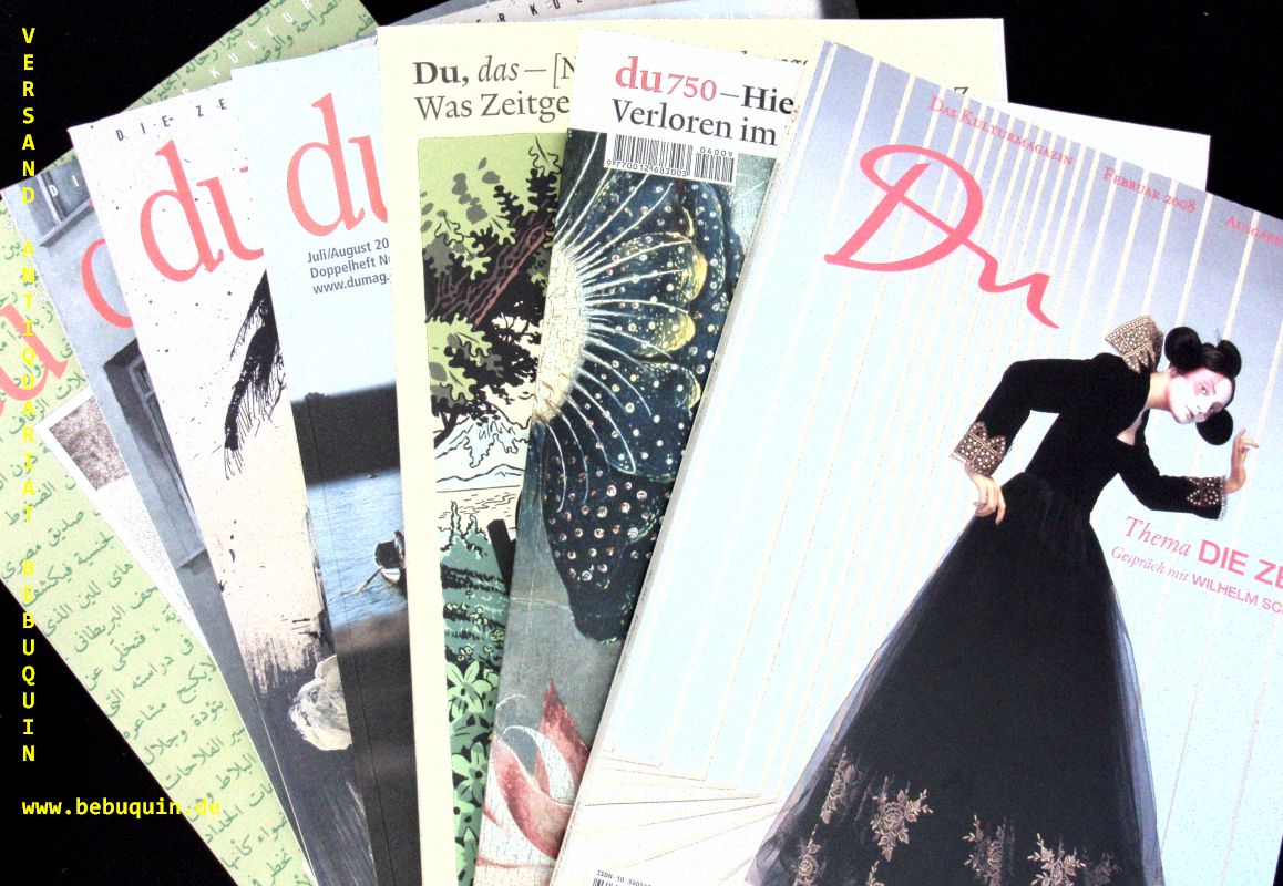 DU.– Konvolut von 7 Heften der Kulturellen Monatsschrift. Die Nummern 640 + 672 + 684 + 738 + 739 + 750 + 783. Zürich (Cionzett & Huber). 1994 ff. 4°. jeweils ca 100 S. mit zahlr. Bildern und Bildtafeln. farb. ill. OKart. gute Ex. Konvolut der wichtigen schweizerischen Foto-Zeitschrift.