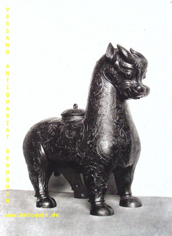 ARDENNE DE TIZAC, Jean Henri d’: Chinesische Tierplastik und Tierbilder. Eine Sammlung von Beispielen ausgewählt u. beschrieben. Einmalige deutsche Ausgabe in 200 nummerierten Exempl. Berlin (Wasmuth), 1924. Folio. 11 S., 50 Bl. mit 50 (davon 6 farb.) Tafeln. OLn mit goldgeprägtem Pferd. Einband etwas gebogen, Kanten berieben, Titelseite mit kleinem Einriss. Nr. 17 von 200 nummerierten Ex. der EA.