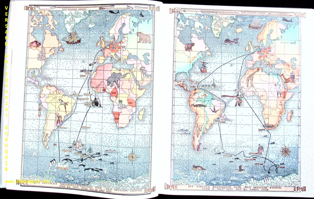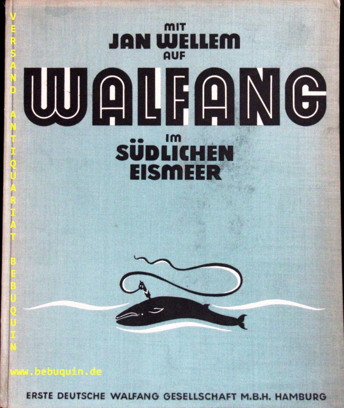 ANGELN.– FRANK, Wolfgang: Der wiedererstandene deutsche Walfang. Dargestellt an der Entwicklungsgeschichte der Ersten Deutschen Walfang-Gesellschaft. In Verbindung mit einem Reisebericht über die 2. „Jan-Wellem“-Expedition. Düsseldorf, 1939. 146 S mit zahlr. teils farb. Fotos. ill. OLn. Einband etwas bestaubt, Rücken geblichen. EA.