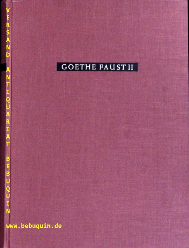 BECKMANN.– GOETHE, Johann Wolfgang von: Faust II. Der Tragödie Zweiter Teil. Frankfurt (Goldene Brunnen), 1957. 4°. 408 S. mit 35 ganzseitigen Holzstichen von Willi Seidl nach Zeichnungen von Max Beckmann. OLn. Ex libris von Rolf Dettling, sonst tadellos. EA mit den Illustrationen von Beckmann, welche bereits 1943 und 1944 entstanden.