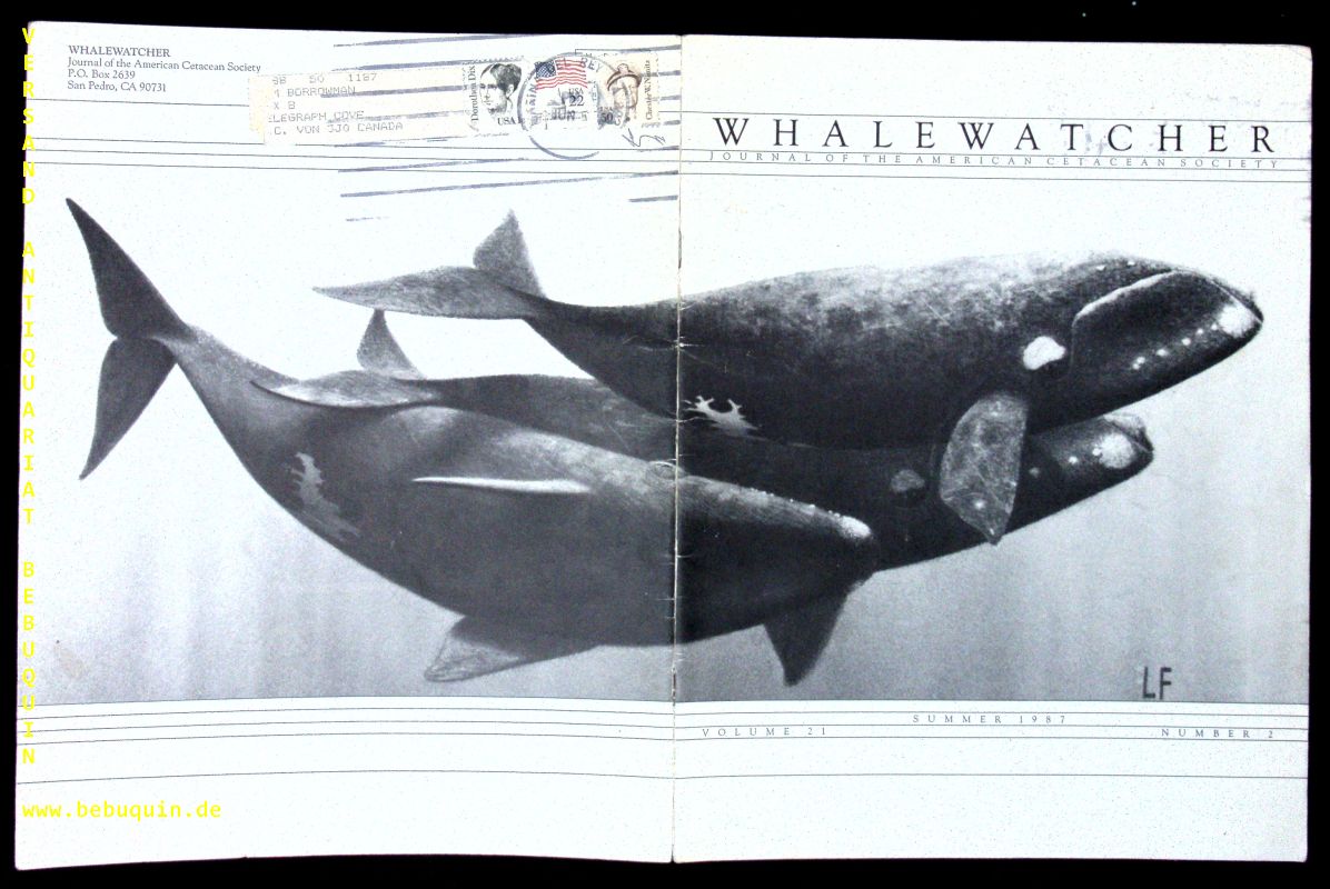 WALE.– WHALEWATCHER.– Vol. 21 / Number 2. Jornal of the American Cetasean Socitey. San Pedro, 1987. 4°. 22 S. mit zahlr. Abb. ill. OKart. gutes Ex. EA.