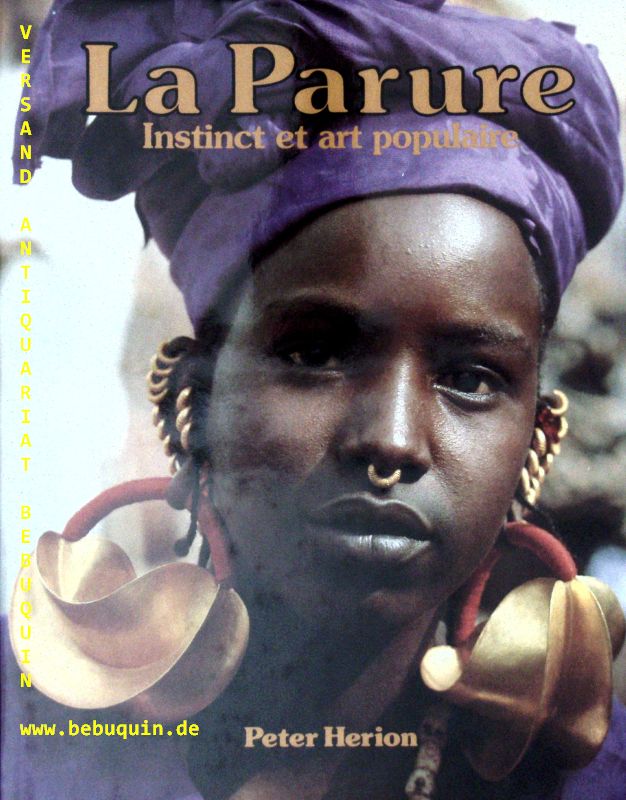 SCHMUCK.– HERION, Peter: La parure. Instinct et art populaire. Königsbach-Stein (Schöner), 1985. 4°. 176 S. mit überwiegend farb. Bildern und Bildtafeln. OLn mit OUmschl. tadellos. EA mit einer eigenhändigen von Peter und Eva Herion signierten Widmung auf Vorsatz.