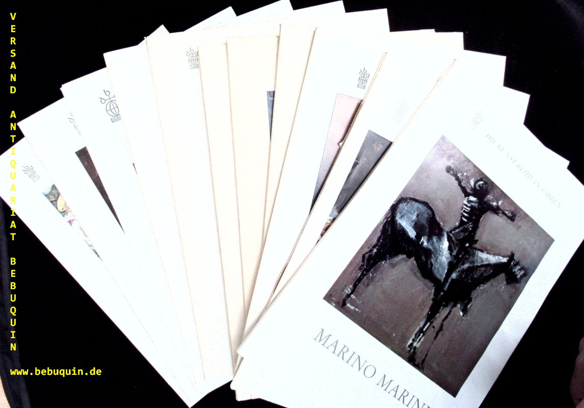 13 KÜNSTLER BILDBÄNDE: Paul Klee. Lovis Corinth. Antike Malerei. Frühe deutsche Miniaturen. Piero Della Francesca. Deutsche Romantiker. Tiepolo. Altdorfer. Watteau. Pablo Picasso. Tizian. Marino Marini. Toulouse-Lautrec. 13 Bände. Berlin, Darmstadt, Wien, (Deutsche Buch-Gemeinschaft), ca 1969. Gr. 4°.– jeweils ca 30 S. mit zahlr. mont Farbbildern. farb.ill. OKart. ein Rücken etwas beschädigt, sonst gut erhalten. = Die Kunst-Reihe in Farben. schöne dekorative und informative Reihe.
