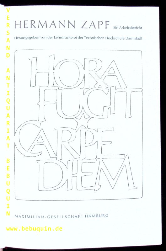 ZAPF, Hermann: Ein Arbeitsbericht. Hamburg (Maximilian), 1984. 4°. 177 S. mit zahlr. teils farb. Bildtafeln. OLn. kaum bestaubt. = Jahresgabe der Maximilian-Gesellschaft, 1983. 1 von 1400 Ex. der EA.