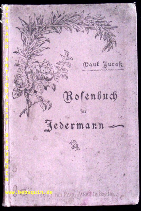 BOTAN IK.– JURASS, Paul: Rosenbuch für Jedermann. Die Kultur, Behandlung u. Pflege d. Rose in monatl. Arbeitseinteilung. Unter Mitw. hervorrag. Rosenzüchter bearb. Berlin (Parey), 1901. VIII, 128 S. mit 8 Taf. u. 19 Textabb. ill. OLn. Kapital beschädigt, Rückdeckel verfärbt, innen wenig gebräunt. EA.