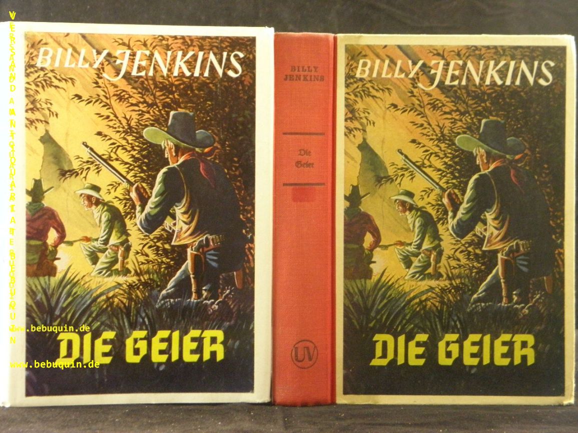 BILLY JENKINS.– ONWARD, Mac: Die Geier. Sinzig (Uta), 1952. 271 S. farb. ill. OHLn. mit OUmschl. gestempeltes Leihbuch. = Billy Jenkins Wild – West – Erzählungen, Bd. 52. 1. Aufl. dieser Ausgabe.