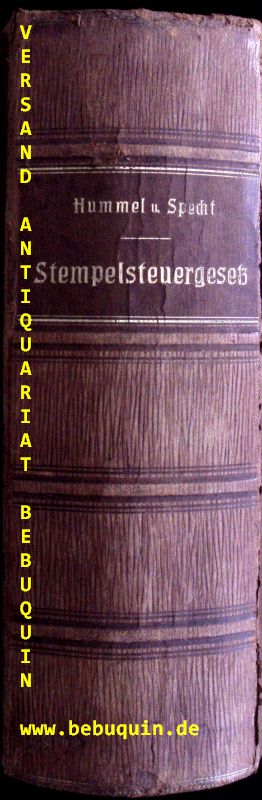 RECHTSWESEN.– HUMMEL, H. + SPECHT, F.: (Hrsg.) Das Stempelsteuergesetz vom 31. Juli 1895 nebst Ausführungsbestimmungen, dem Erbschaftssteuer-, Wechselstempelsteuer- und Reichsstempelgesetz. Kommentar für den praktischen Gebrauch. Berlin (Guttentag), 1906. Grl. 8°. XXIII, 1392 S. OHLdr mit goldgeprägtem Rücken. NaT, sonst feines Ex. EA dieses wichtigen Titels, der sonst als Reprint angeboten wird. Hier im Original.