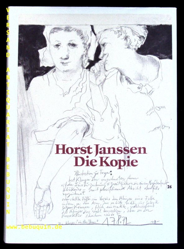 JANSSEN, Horst: Die Kopie. Hrsg. von Gerhard Schack. Hamburg (Christians), 1977. Gr. 4°. 467 S. mit zahlr. teils farb. Bildtafeln. braunes OLn mit OUmschl. in OSchuber. NaV, gutes Ex. EA Rüden A.46.1.3.