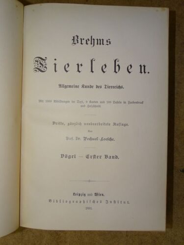 ZOOLOGIE.– BREHMS TIERLEBEN.– Allgemeine Kunde des Tierreichs. 3. gänzlich umgearbeitete Auflage. 10 Bände. Leipzig (BI), 1890 – 93. 4°. ca 9000 S. mit 1800 Textabb., 9 Karten und 180 Tafeln in Farbendruck und Holzschnitt. OHLdr mit goldgeprägten Rücken. Kanten teils etwas berieben, ein Kapital gering benagt, insgesamt schönes Exemplar dieser gesuchten Ausgabe.