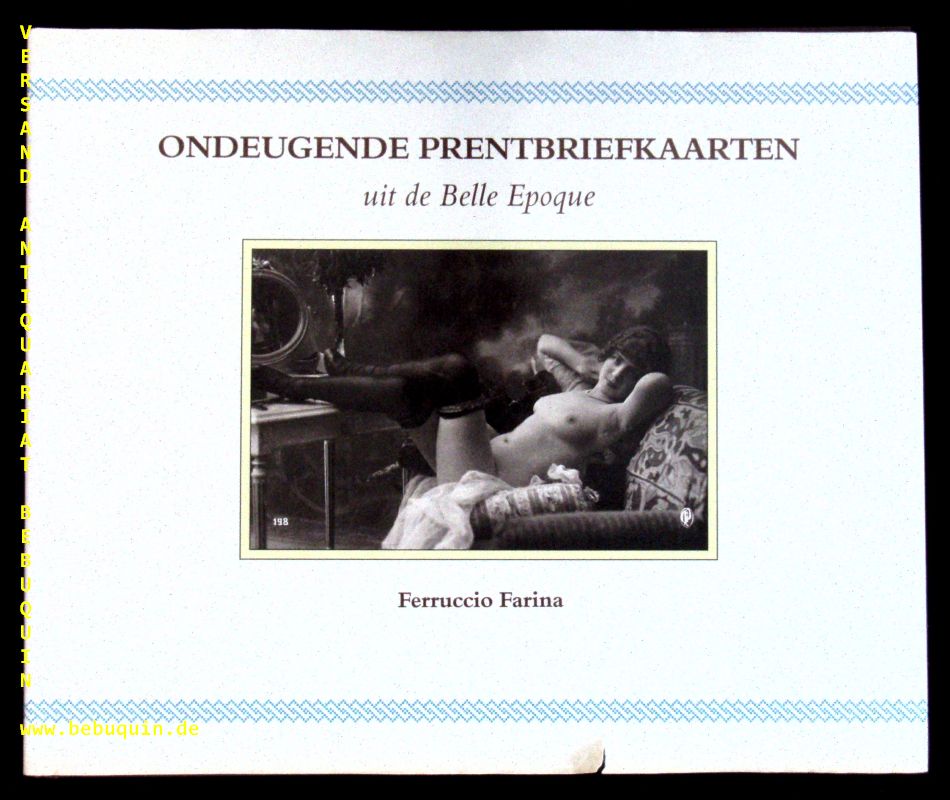 EROTIK.– FARINA, Ferruccio: Ondeugende Prentbriefkaarten uit de Belle Epoque. Alphen (Atrium), o.J. Quer Gr. 4°. 173 S. mit zahlr. historischen Nacktaufnahmen. OLn mit OUmschl. Umschlag leicht lädiert. EA.