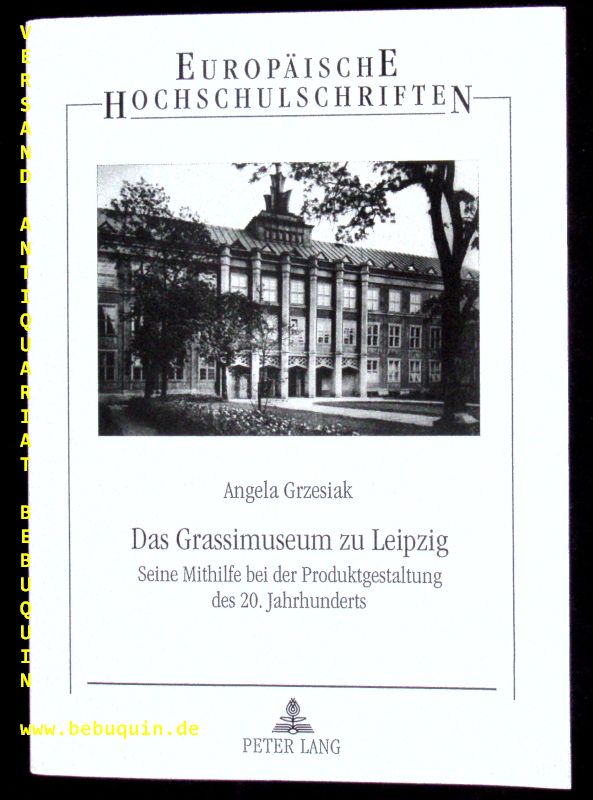 LEIPZIG.– GRZESIAK, Angela: Das Grassimuseum zu Leipzig. Seine Mithilfe bei der Produktgestaltung des 20. Jahrhunderts. Frankfurt (Lang), 1996. 488 S. mit zahlr. Bildtafeln. ill. OKart. tadellos. = Europäische Hochschulschriften; Reihe 3, Geschichte und ihre Hilfswissenschaften, 701. EA.