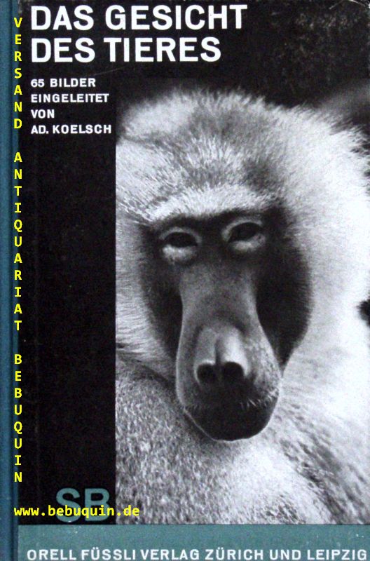 ZOOLOGIE.– KOELSCH, Adolf: Das Gesicht des Tieres. Hrsg. von Emil Schaeffer. Zürich (Orell Füssli), 1931. 16 S. + 64 Bildtafeln sowie 10 Werbeseiten. ill. OHLn. feines Ex. = Schaubücher 30. EA.