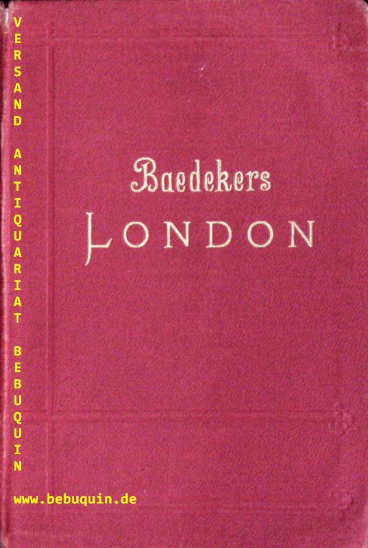 BAEDEKER.– LONDON UND UMGEBUNG.– Handbuch für Reisende. 17. Aufl. Leipzig (Baedeker), 1912. XXXVI, 400 S. mit 4 Karten + 34 Plänen und Grundrissen sowie dem Plananhang mit 44 S. und zahlr. Plänen und Karten . OLn. Plananhang offensichtlich unvollständig. letzte Auflage dieser Ausgabe mit dem seltenen Plananhang. BK D436.
