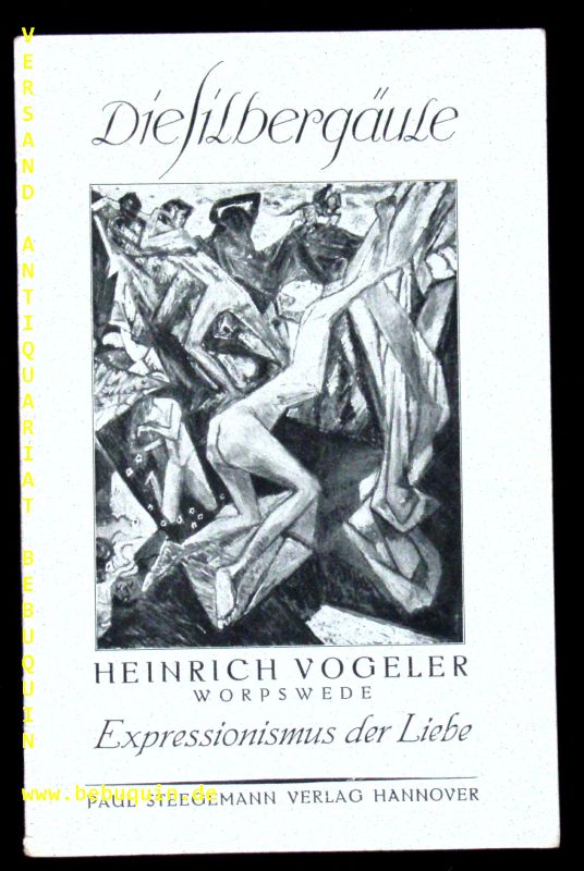 VOGELER-WORPSWEDE, Heinrich: Über den Expressionismus der Liebe. Neue veränd. Ausgabe. Hannover (Steegemann), 1919. Oktav. 14 (10) S. ill. OKart von Vogeler. Untere Ecke geknickt, einige gut radierbare Unterstreichungen. = Die Silbergäule, Bd. 12. Erste Ausgabe im Paul Steegemann Verlag und erste mit der