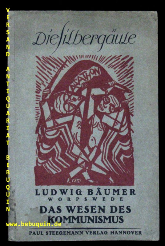 BÄUMER, Ludwig: Das Wesen des Kommunismus. Erstes bis drittes Tausend. Hannover (Paul Steegemann), 1919. Gr. 8°. 27 (5) S. ill. OKart von Karl Jakob Hirsch. unterer Rücken etwas angeschmutzt, sonst gut. = Die Silbergäule, 25.-26. Band. EA. Raabe-Hannich 13, 2. Meyer 1.