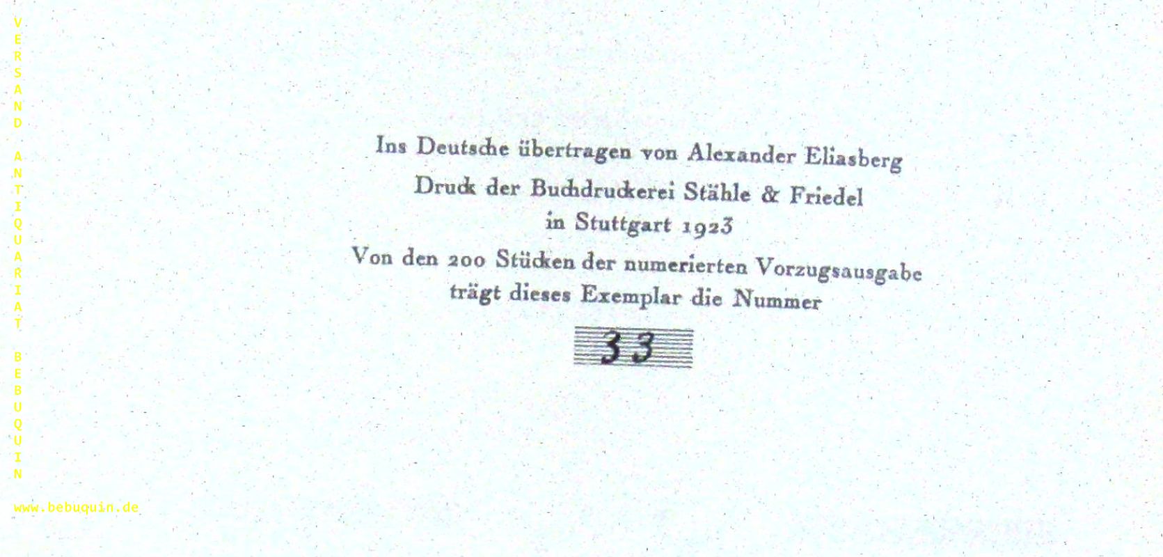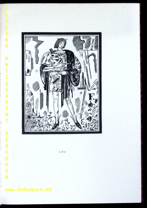 MASJUTIN.– TURGENIEW, Ivan Sergeevich: Das Lied der triumphierenden Liebe. Stuttgart (Hoffmann), 1923. 4°. 71 S. mit 16 Zeichnungen von W. Masjutin. OHLdr mit goldgeprägtem Rücken. oberes Kap. beschädigt. Nr 33 von 200 Ex. der numerierten Vorzugsausgabe.