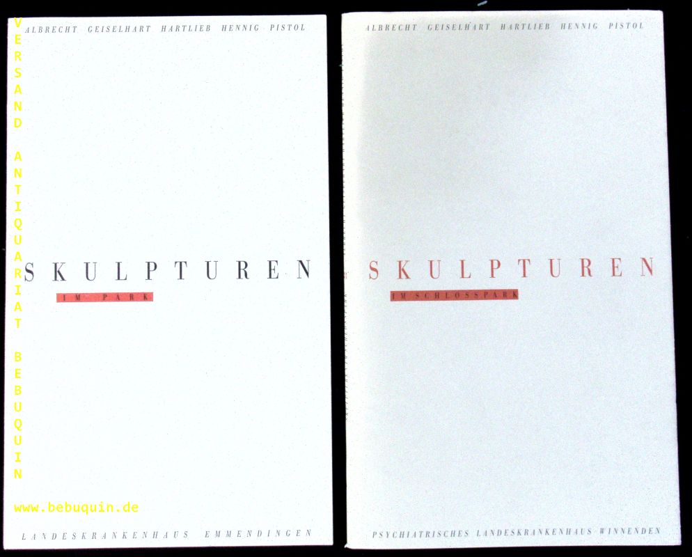 ALBRECHT / GEISELHART / HARTLIB /HENNIG / PISTOL: Skulpturen im Park + Skulpturen im Schloßpark. Landeskrankenhaus Emmendingen + Psychiatrisches Landeskrankenhaus Winnenden. 2 Bände. Stuttgart, 1989. 4°. jeweils Bl. mit zahlr. Bildern. OKart. bzw. OHLn. gute Ex. EA.