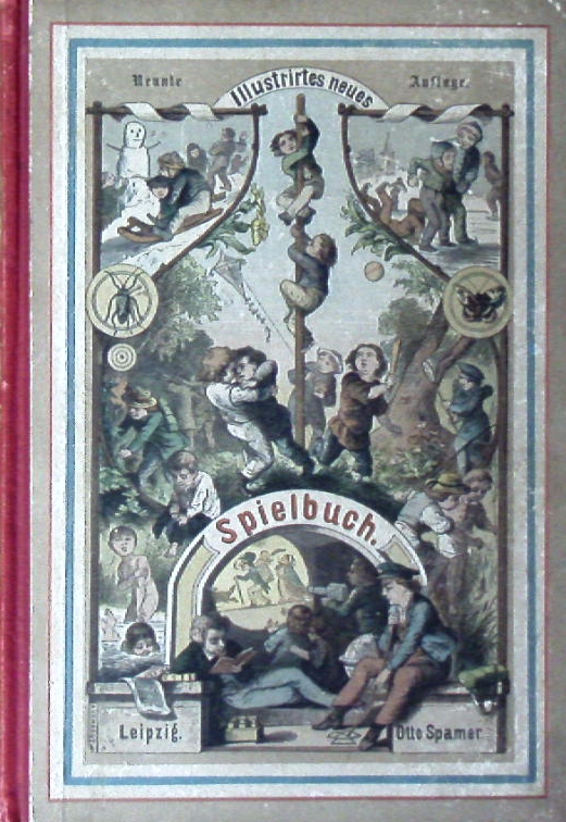 SPIELE.– WAGNER, Hermann: Illustriertes Spielbuch für Knaben. Planmäßig geordnete Sammlung zahlreicher anregender Belustigungen, Spiele und Beschäftigungen für Körper und Geist, im Freien und im Zimmer. 10., verb. Aufl. Leipzig (Spamer), 1889. octavo. XVI, 383 S. mit mehr als 500 Textabb. sowie 8 Tafeln in Buntdruck nebst einem Titelbild. farb. ill. OHLn. fliegender Vorsatz fehlt, Kanten leicht berieben, Deckel-Aufdruck als 9. Aufl. .