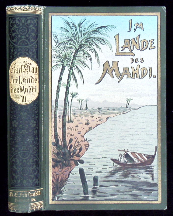 MAY, Karl: Im Lande des Mahdi. III. Band. 21.– 25. Tsd. Freiburg (Fehsenfeld), (1901). 571 (1) S. farb. ill. OLn. (DB 68). unteres Kap minimal berieben, NaV, Bandtitel auf Reihentitelblatt eingetragen, sonst tadellos mit strahlendem Rückengold. = Gesammelte Werke, Bd. XVIII. Plaul 280.5.
