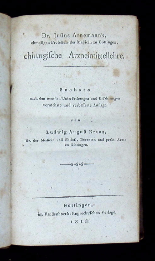 ARNEMANN, Dr. Justus Arnemann’s … chirurgische Arzneimittellehre.