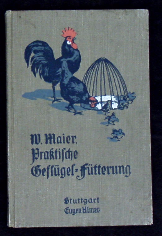 ORNITHOLOGIE.– MAIER, Wilhelm: Praktische Geflügelfütterung. Ein Hilfsbuch für Geflügelzüchter und Geflügelzuchtvereine. Stuttgart (Ulmer), 1908. VI, 120 S. mit 31 Abb. farb. ill. OLn. kaum gebräunt. EA.