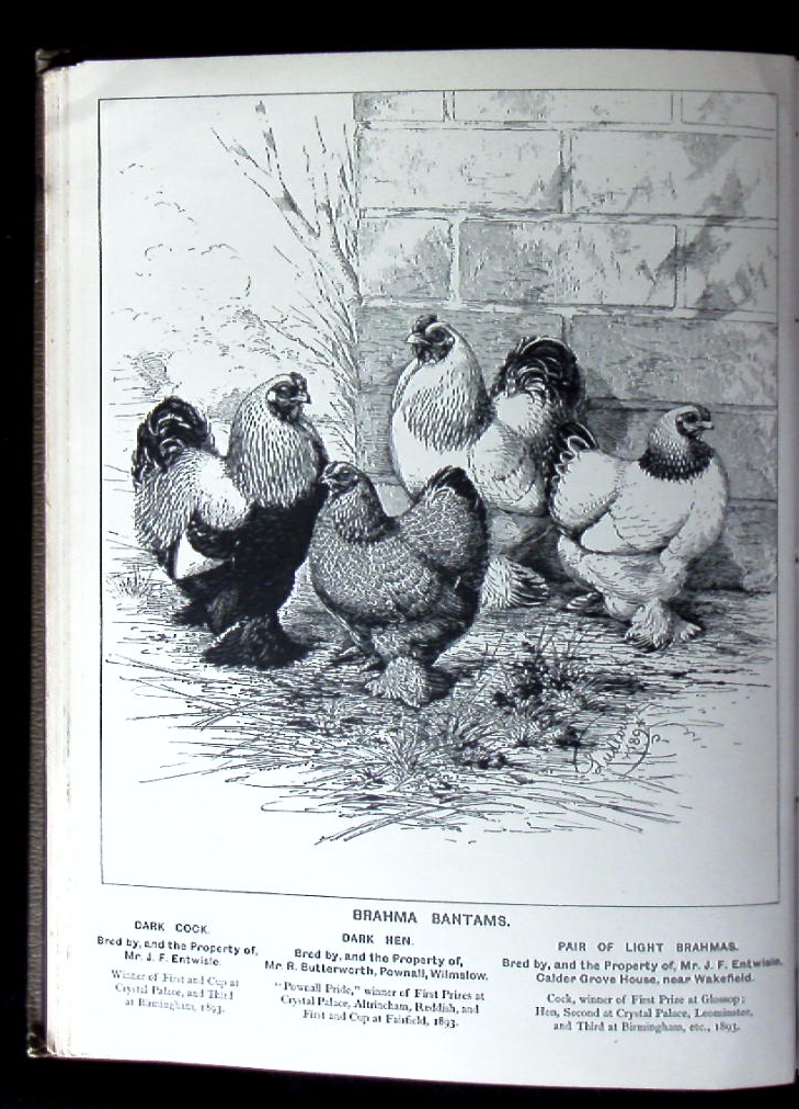 ORNITHOLOGIE.– ENTWISLE, Wiliam Flamank: Bantams. Wakefield, 1894. 4°. 132 S. mit 8 Textabb. + 13 teils gefalteten Bildtafeln von Ludlow sowie einem umfangreichem Werbeteil. OLn mit Blindprägung. Gelenke offen, sonst gut erhalten. seltene EA. Mr. Entwisle was considered ”the leading Bantam breeder in the world” and was responsible for the creation of several Bantam varieties that are still enjoyed by breeders and other Bantam enthusiasts to this day. Included in the text are discussions on Game Bantams, Malay and Aseel Bantams, Cochins, Brahmas, Sultans, Burmese and Silky Bantams, Sebright Bantams, Rosecomb Bantams, Scotch Greys, Nankins, Japanese Bantams, Frizzles, Polish Bantams, Minorcas, Leghorns, Hamburgs and other Bantams. Also included are details on breeding, rearing and exhibiting Bantams, making this one of the best historic texts on Bantams ever written. (Internet)