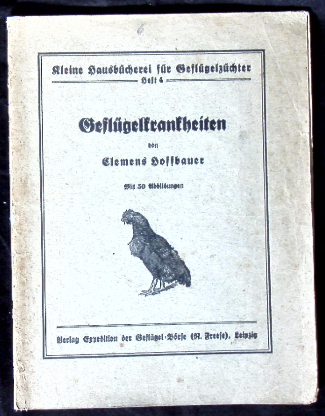 ORNITHOLOGIE.– HOFFBAUER, Clemens: Geflügelkrankheiten. Leipzig (Geflügel-Börse), ca 1935. Gr. 8°. 32 S. mit 50 Abb. ill. OBr. etwas gebräunt. = Kleine Hausbücherei für Geflügelzüchter, Heft 4. EA.