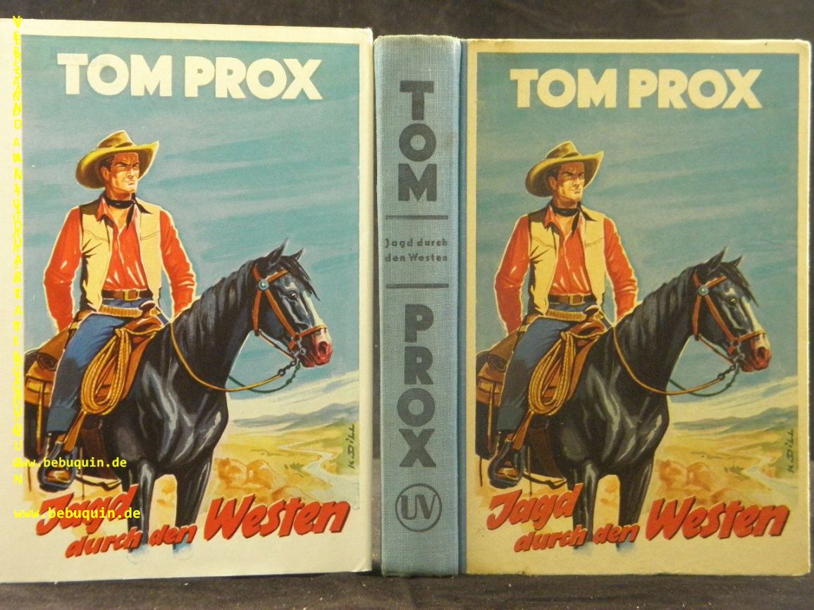 TOM PROX.– TURREK, Sam: Jagd durch den Westen. Wie Tom Prox den „Schrecken des Westens“ erledigt. Sinzig (Uta), 1952. 272 S. farb. ill. OHLn mit OUmschl. gestempeltes Leihbuch. = Tom Prox abenteuerliche Erlebnisse, Bd. 20. 1. Aufl. dieser Ausgabe.