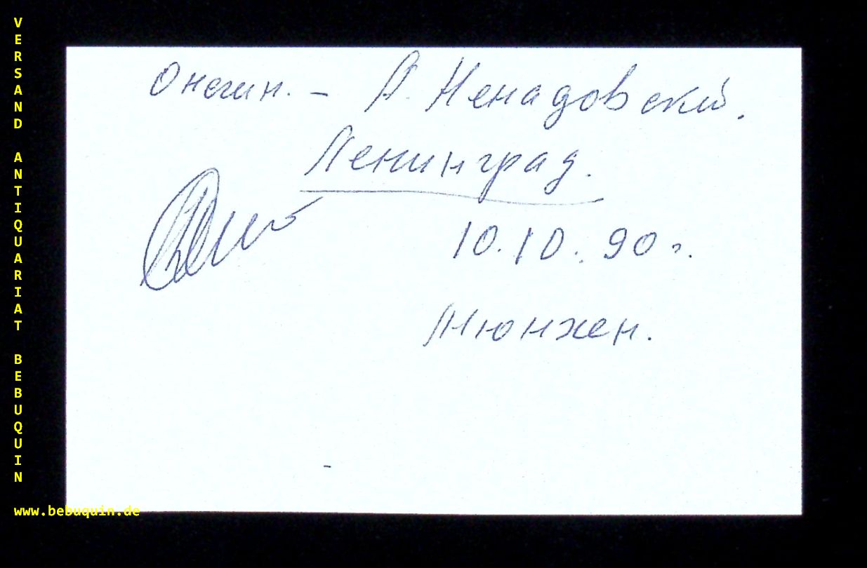 NENADOWSKY, Alexander (Bariton): eigenhändig signierte und datierte Autogrammkarte. München (Herkulessaal), 10.10.1990. 8 x 12,5 cm. Karteikarten.