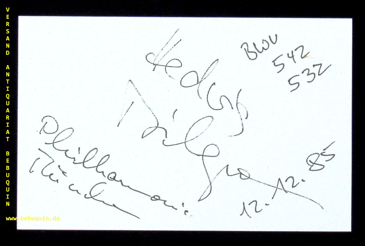 BILGRAM, Hedwig (Organistin) + ANDRE, Maurice (Trompeter): eigenhändig von beiden signierte Autogrammkarte. München (Philharmonie), 12.12.1985. 8 x 12,5 cm. Karteikarte. Hedwig Bilgram (* 31. März 1933 in Memmingen) ist eine deutsche Organistin und Cembalistin. Sie war an der Hochschule für Musik und Theater München Professorin für Orgel und Cembalo. (Wikipedia)
